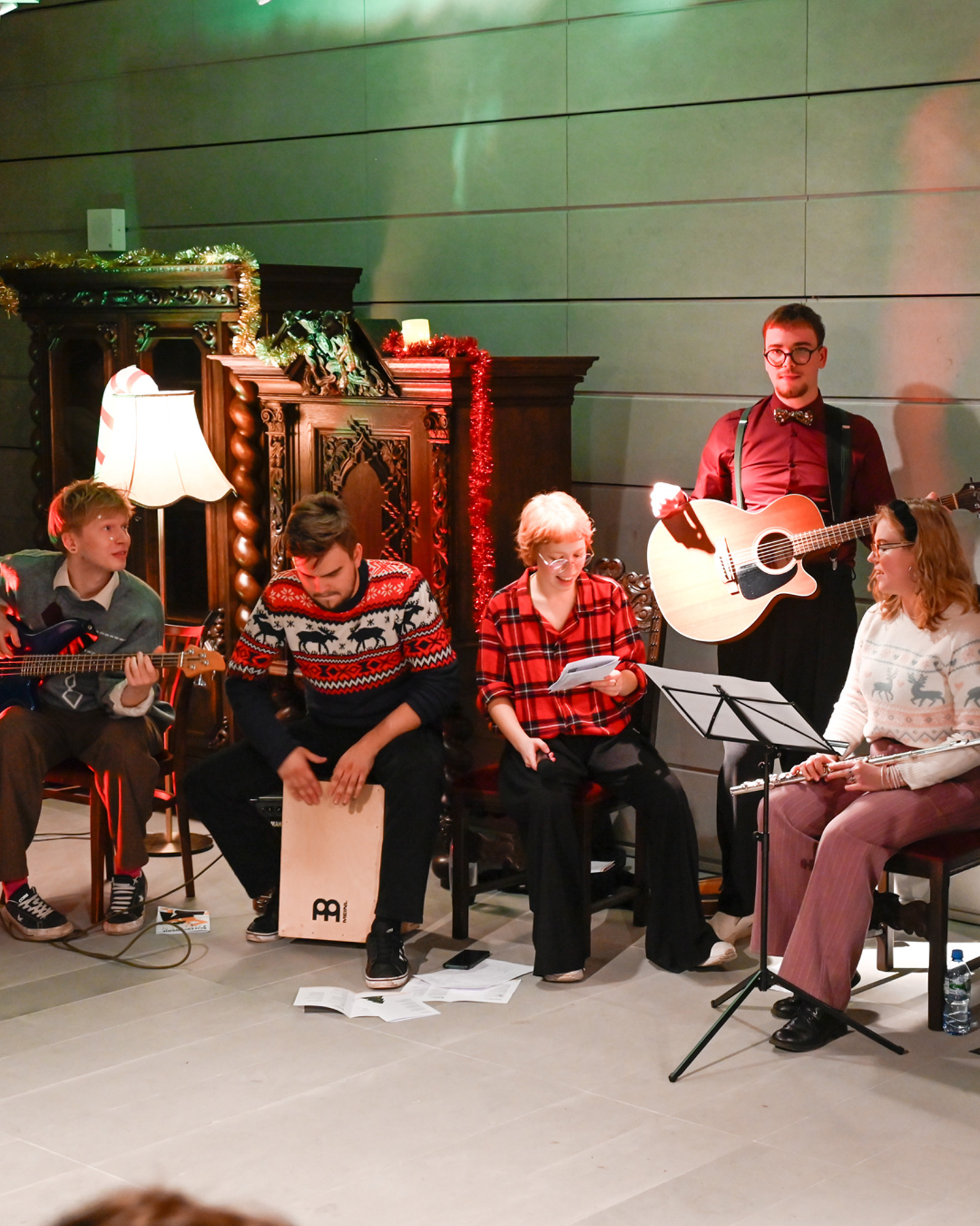 Nie był to zwykły koncert, lecz szczególny wieczór wspólnego muzykowania i świętowania, w którym każdy uczestnik mógł odnaleźć coś dla siebie. Śpiewano razem – z radością, wzruszeniem i poczuciem wspólnoty. Dzięki muzykom z zespołu Nomen Omen, ich wyjątkowym opracowaniom oraz serdecznej, otwartej energii publiczności, w Bibliotece zapanowała prawdziwie świąteczna atmosfera – pełna ciepła, bliskości i światła.